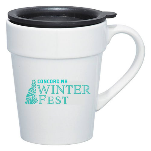 - A limited-edition reusable coffee mug featuring the Concord Winter Fest logo.