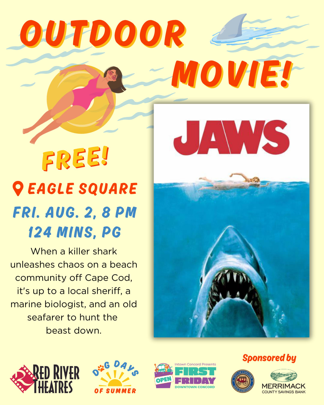 Outdoor Movie: Jaws (Eagle Square) - Come watch Jaws outdoors in Eagle Square at 8 pm! Presented by Red River Theatres.